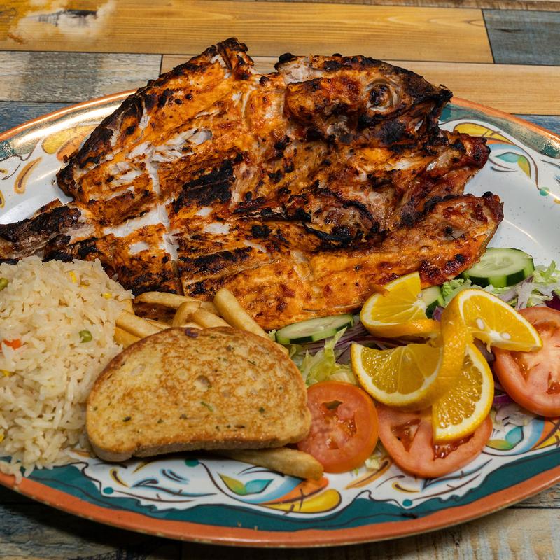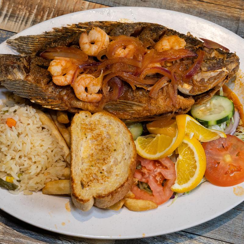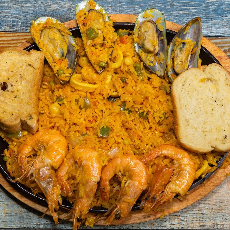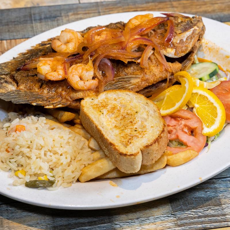 Breaded fried fish chunks, crispy calamari, shrimp, empanadas with salsa verde and special dressing